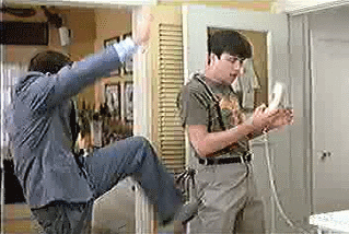 Meanwhile both Mr. Rooney and Ferris's sister are now skipping school to try and catch Ferris in the act. Mr. Rooney goes to a pizza parlor where he sees what he thinks is Ferris watching a group of teens playing Karate Champ at an arcade machine. (which for some reason makes the Pac-Man life lost sound) Mr. Rooney walks over to who he thinks is Ferris and says: