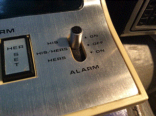 This could be considered a bit sexist these days, but it's not a bad idea as far as practicality goes. If either the husband or wife had to get up earlier than the other, there are two different alarms for each of them. They both sound the same, but they can be set indivdually with their own dedicated buttons.