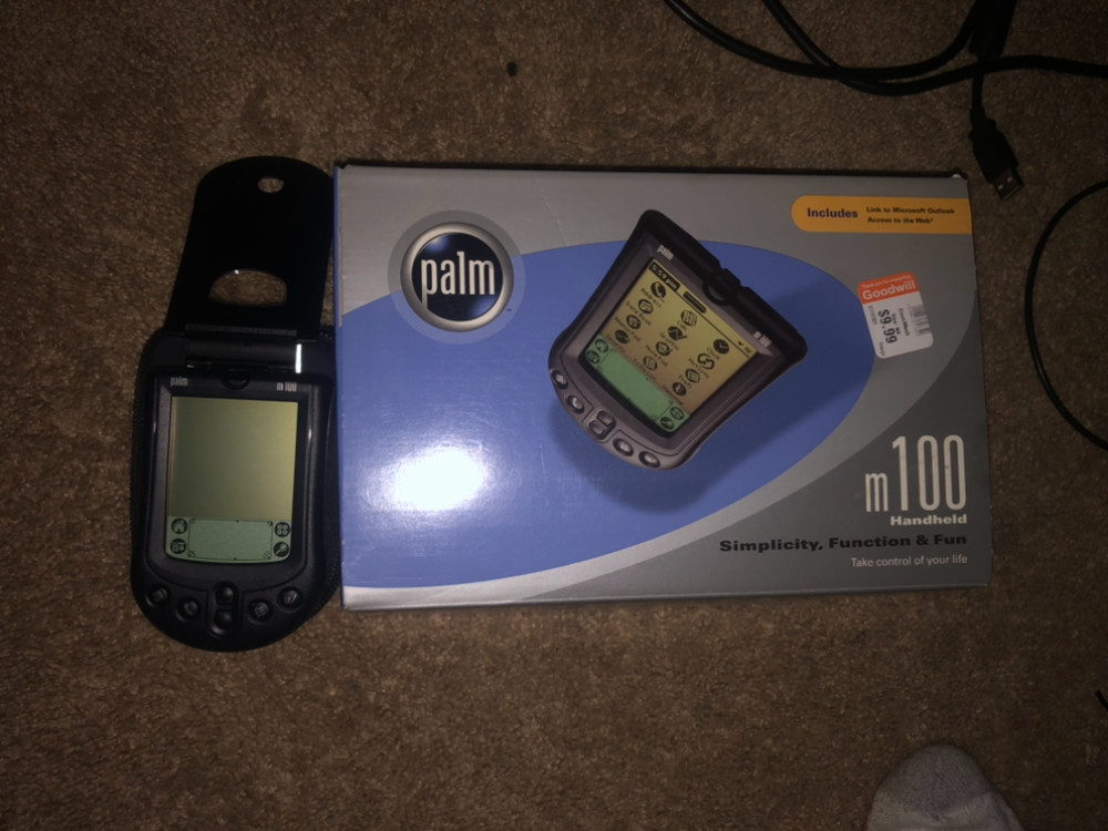 So after all those years of wanting to use 98, what do I think of it? Well, as a 21-year-old boomer I have to say it's basically just a primitive precursor to Windows XP, with the added bonus of being able to run DOS software without installing DOSBox. That's basically it. But it's not entirely pointless, as even though most non-DOS software for 98 will run on XP in compatibility mode, there are a few things that warrant keeping it around. Take for example this Palm m100 PDA I bought at another Goodwill location for $9.99 + tax.